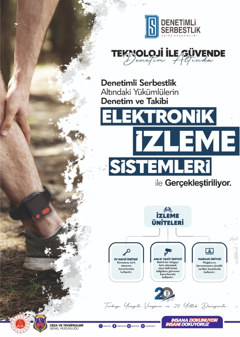 Denetimli Serbestlik Daire Başkanlığı bünyesinde 2013 yılında kurulan Elektronik İzleme Merkezi, aynı anda 3.000 yükümlünün eş zamanlı takibini yapabilecek kapasiteye sahiptir. Merkezde kullanılan sistemler ileri teknoloji ve güvenilir yazılımlar ile donatılmış olup, bilgi güvenliği ve kişisel verilerin korunması UYAP sistemi üzerinden sağlanmaktadır.